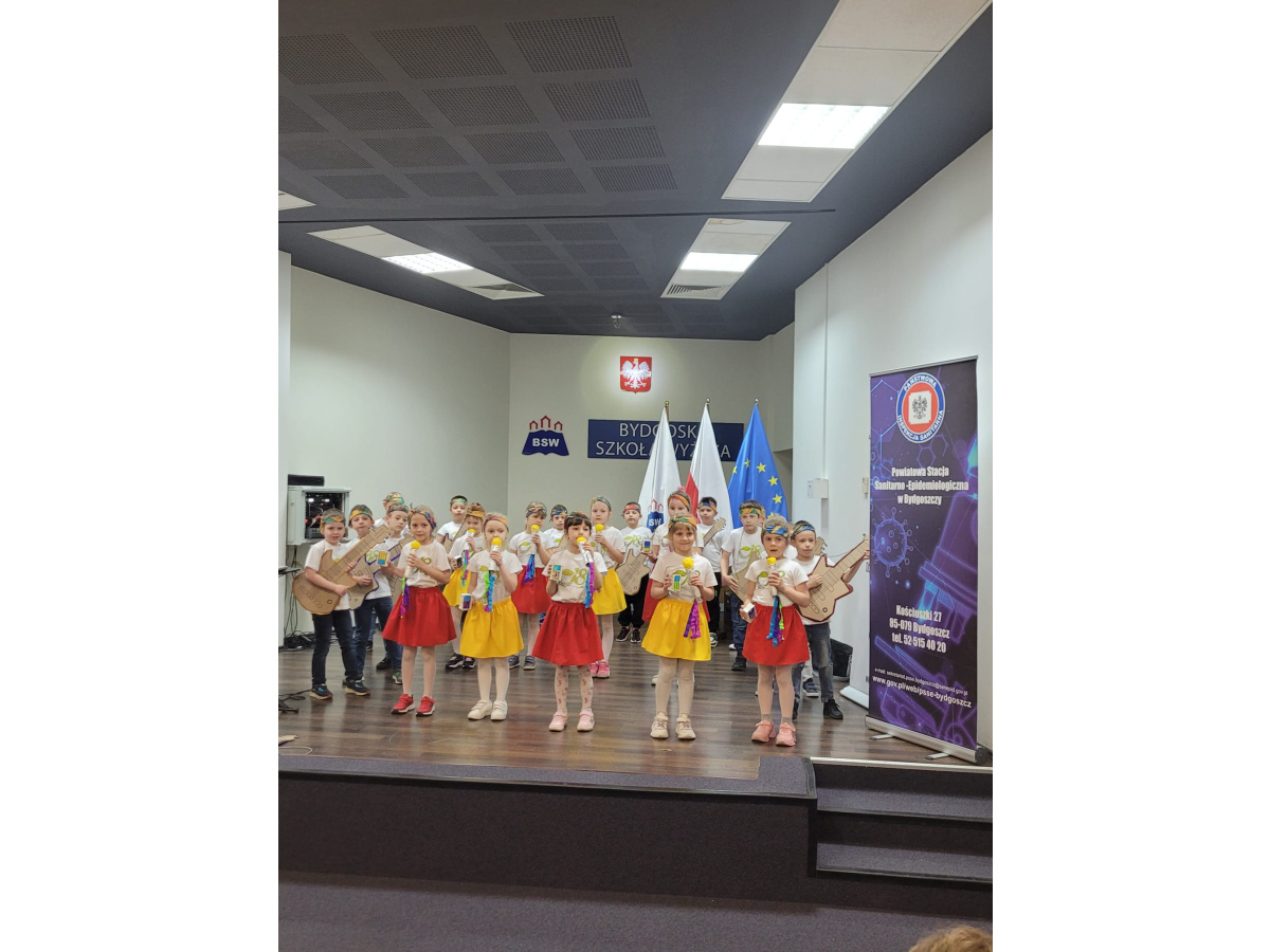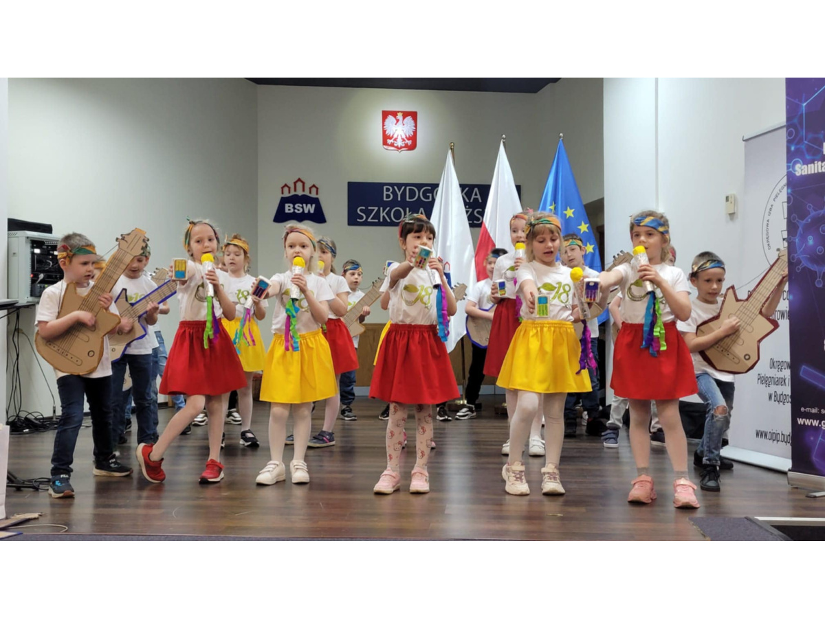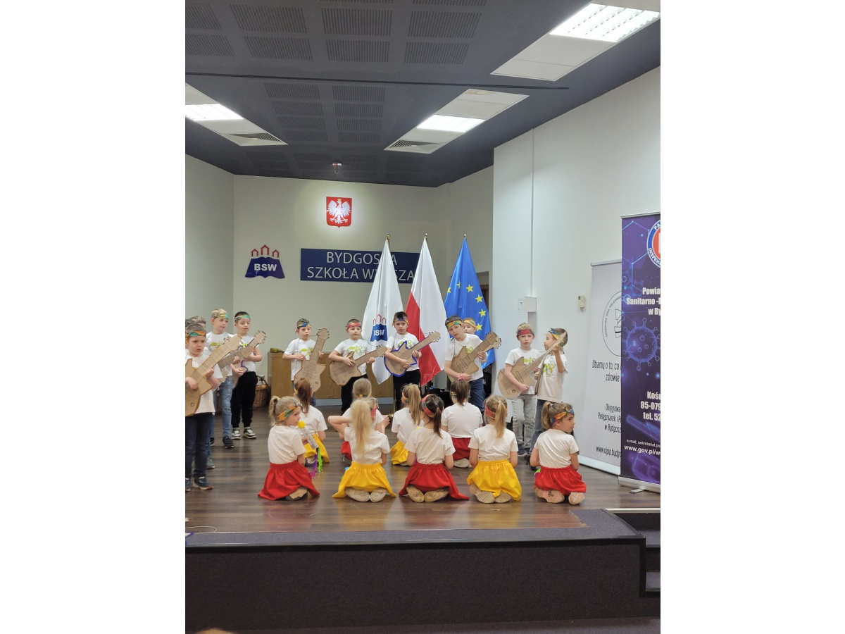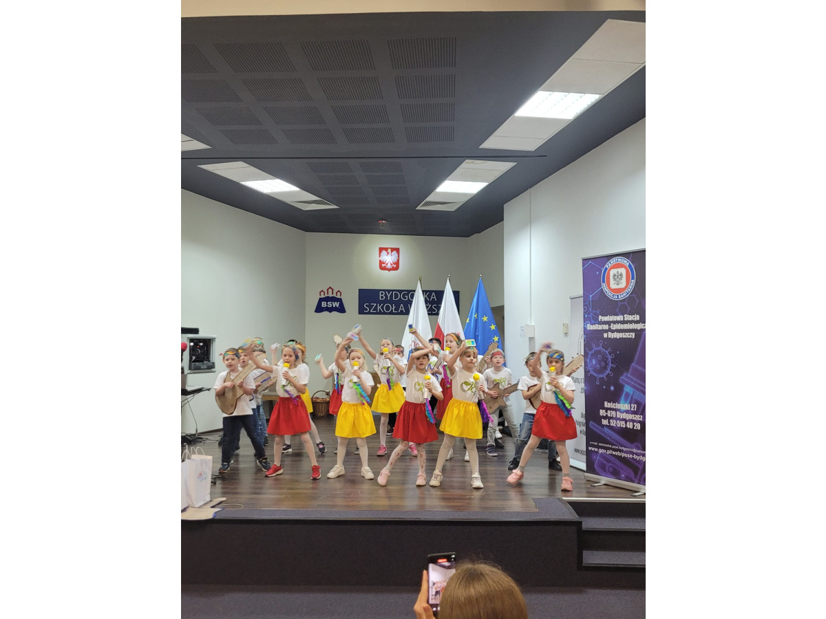 W DNIU 24.04.2025 ODBYŁA SIĘ W BYDGOSKIEJ SZKOLE WYŻSZEJ 10-TA EDYCJA PROJEKTU "BYDGOSZCZ ZDROWA, WOLNA OD NAŁOGÓW". GRUPA 5 MIAŁA PRZYJEMNOŚĆ UŚWIETNIĆ GALĘ SWOIM WYSTĘPEM, ŚPIEWAJĄC I TAŃCZĄC DO PIOSENKI "SMARTFONOWA CHA-CHA".