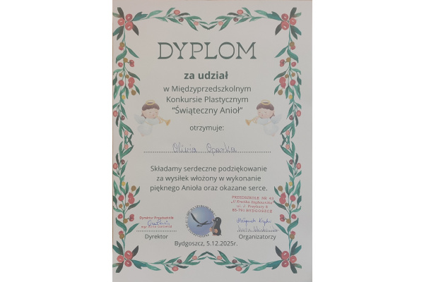GALERIA - PODZIĘKOWANIA ZA UDZIAŁ W KONKURSIE I WYRÓŻNIENIE DLA LETYCJI