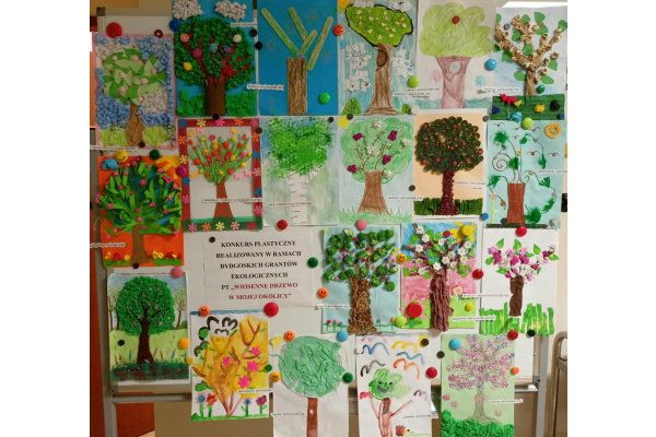 W ramach Bydgoskich Grantów Ekologicznych nasze przedszkole realizuje projekt: "Rośliny i zwierzęta wokół mnie - dbam o bioróżnorodność w moim przedszkolu i w moim mieście". Jednym z działań było zorganizowanie konkursu plastycznego dla dzieci w wieku przedszkolnym pt: "Wiosenne drzewo w mojej okolicy". Na konkurs wpłynęło wiele pięknych prac i wybór laureatów był naprawdę niełatwy. Ostatecznie jury przyznało następujące nagrody:
