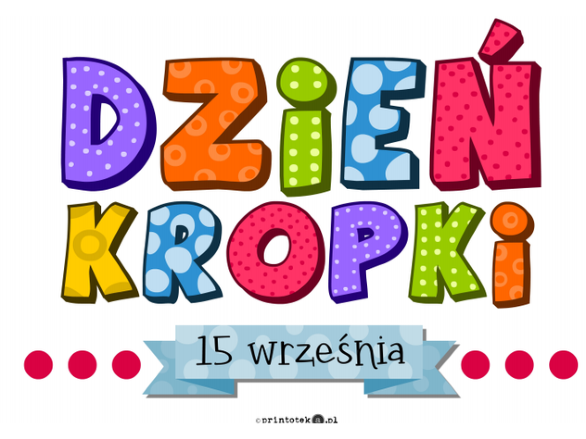 Drodzy Rodzice, dnia 15 września będziemy obchodzić w naszym przedszkolu Międzynarodowy Dzień Kropki – święto kreatywności. Tego dnia prosimy, aby dzieci przyszły ubrane w elementy garderoby z motywem kropek, mogą być namalowane, naklejone, naszyte itd. Może być jedna kropka, może być ich dużo. Małe kropki, duże kropki - wszystkie pomysły mile widziane W planach mamy mnóstwo wesołych zabaw, prac plastycznych i aktywności związanych z kropkami, które pomogą każdemu przedszkolakowi uwierzyć w swoje możliwości.