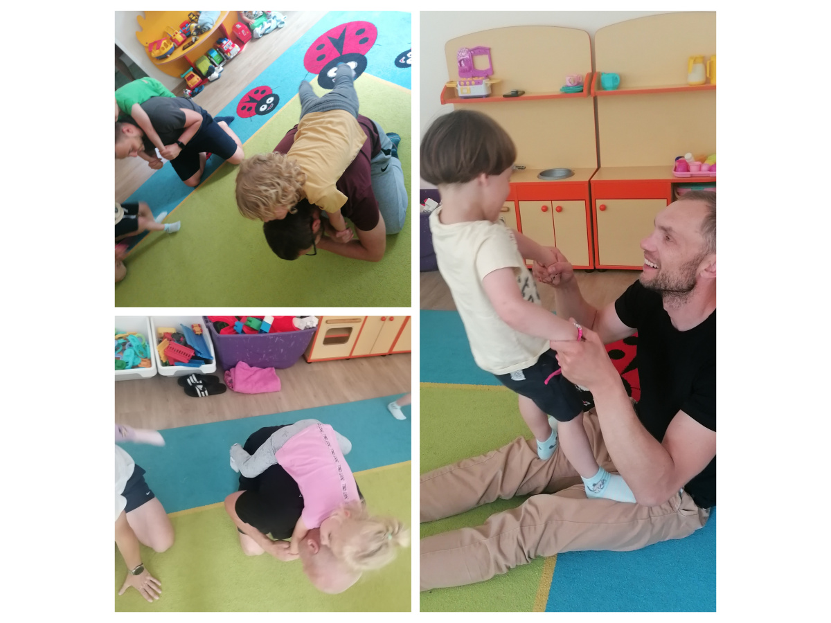 Wspólna zabawa, ruch, ćwiczenia bez obuwia, muzyka, śmiech i… mnóstwo bliskości oraz kreatywności !