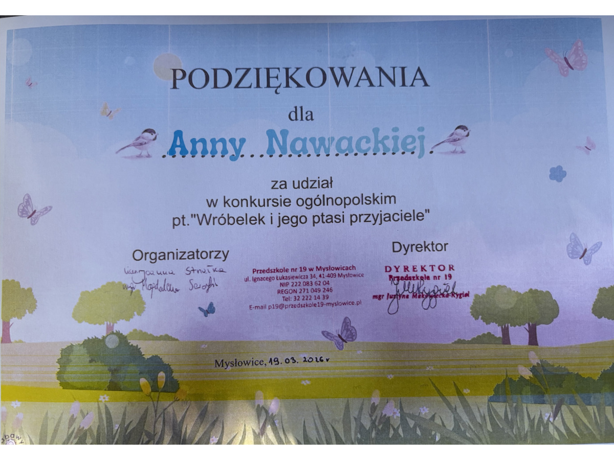 GALERIA - PODZIĘKOWANIA I DYPLOMY ZA UDZIAŁ W KONKURSACH