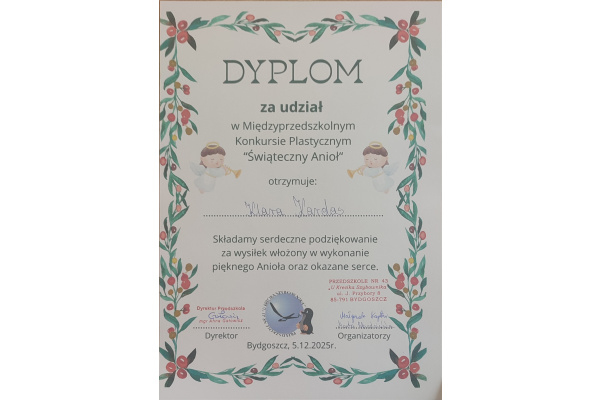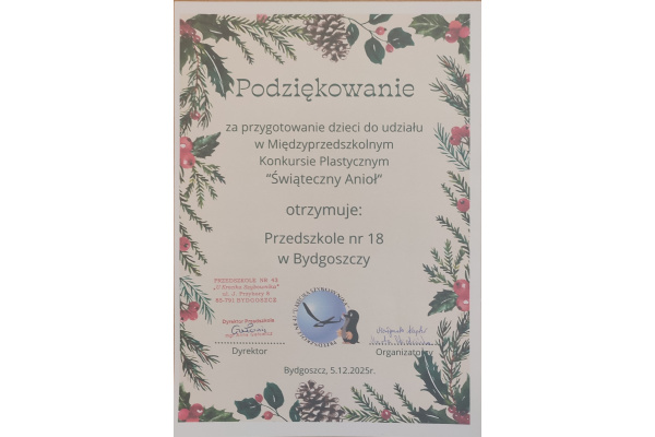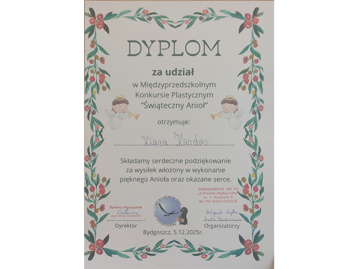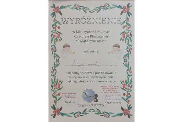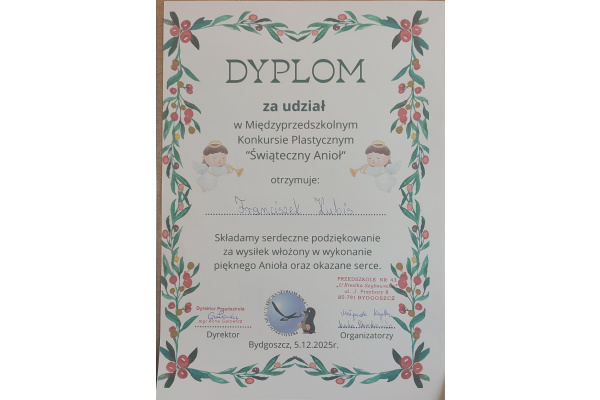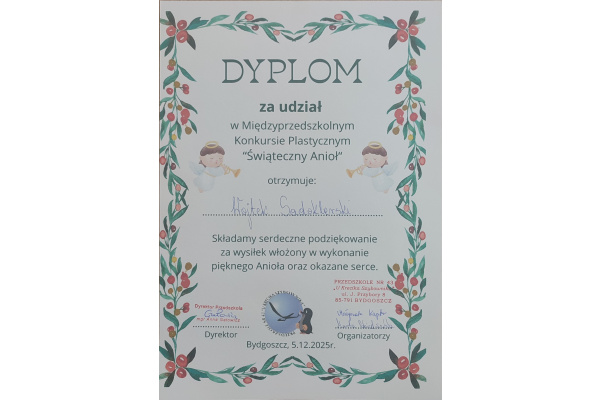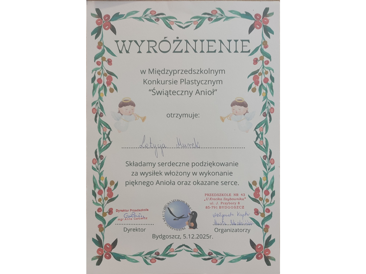 GALERIA - PODZIĘKOWANIA ZA UDZIAŁ W KONKURSIE I WYRÓŻNIENIE DLA LETYCJI