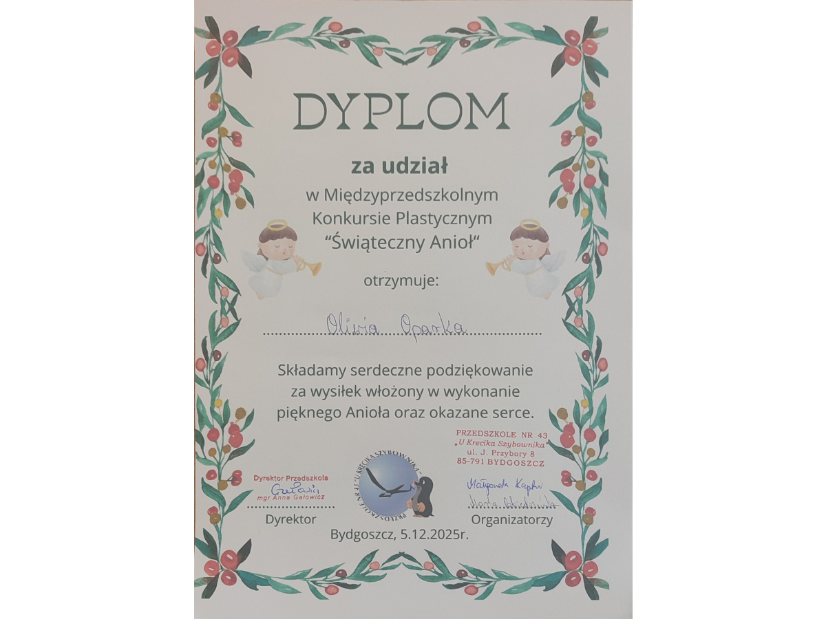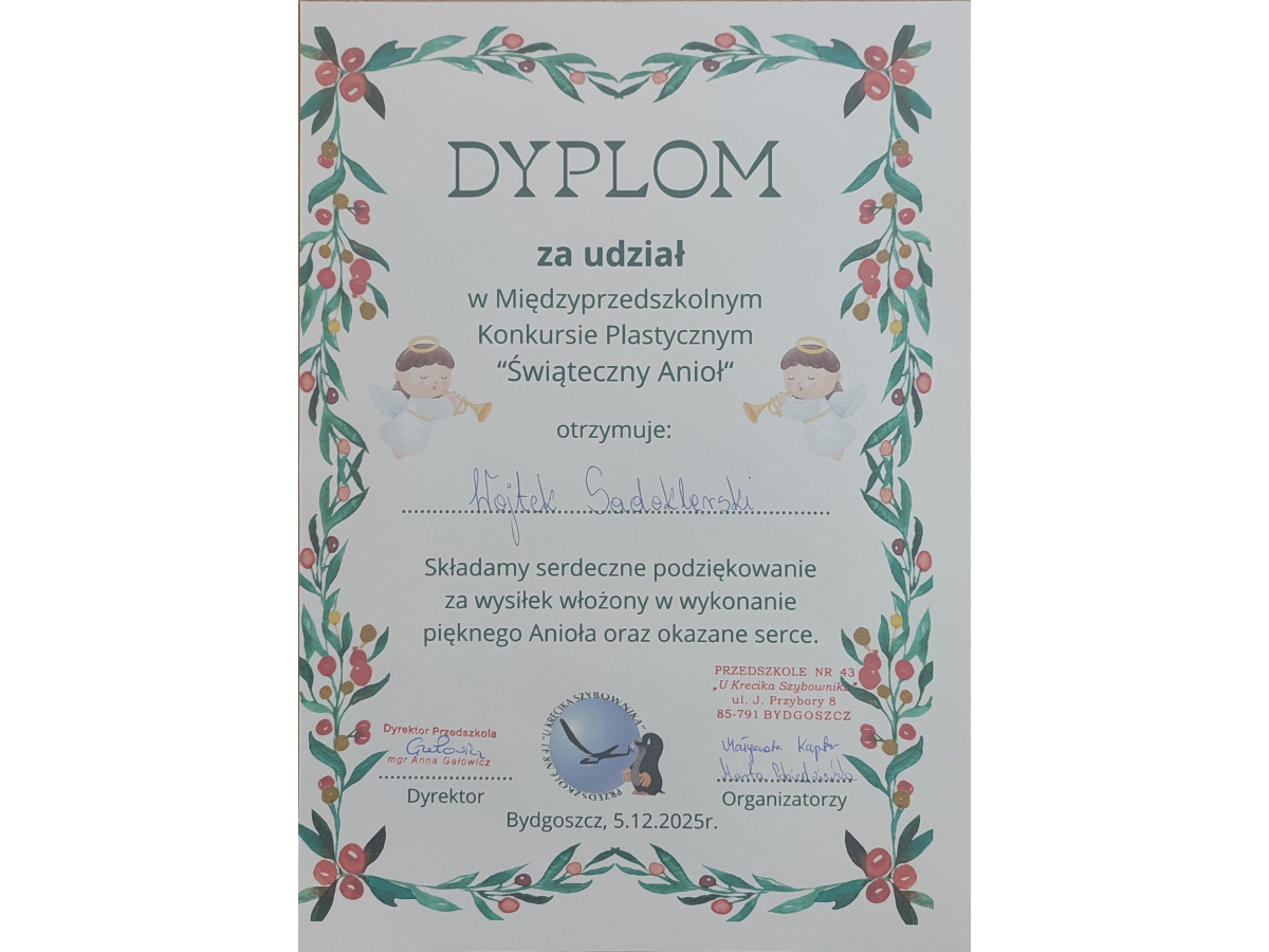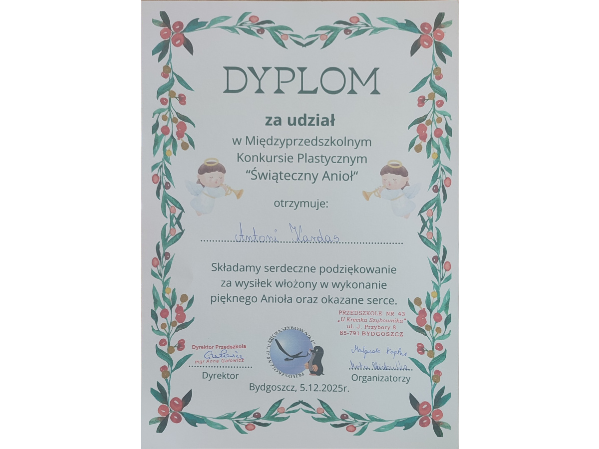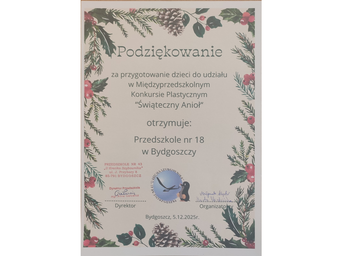 GALERIA - PODZIĘKOWANIA ZA UDZIAŁ W KONKURSIE I WYRÓŻNIENIE DLA LETYCJI
