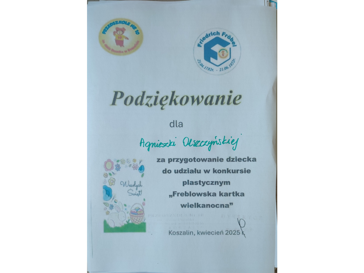 GALERIA - PODZIĘKOWANIE ZA PRZYGOTOWANIE DZIECI DO KONKURSU PLASTYCZNEGO