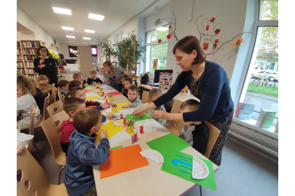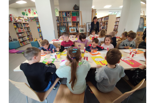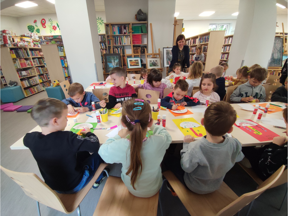 GALERIA - WIZYTA DZIECI Z GRUPY V W BIBLIOTECE NA ZAJĘCIACH " KOLORY JESIENI"