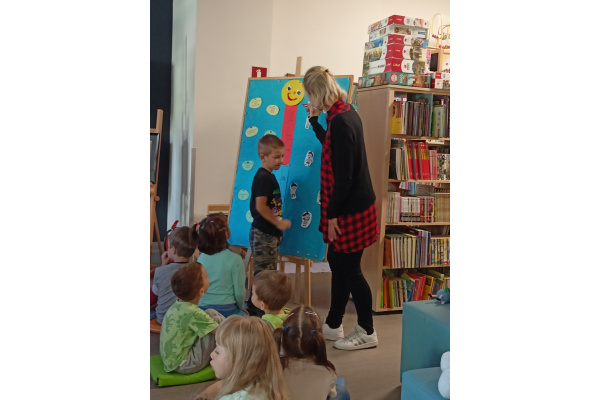 GALERIA - ZAJĘCIA BIBLIOTECZNE NA TEMAT EMOCJI I RADZENIA SOBIE Z NIMI - GR.5