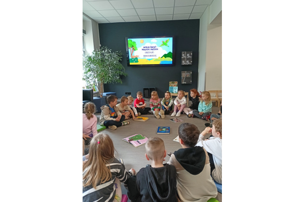W piątek 30.05.2025 grupa 5 udała się do biblioteki, aby wziąć udział w zajęciach dotyczących bioróżnorodności w ramach realizacji grantu oświatowego pt : "Rośliny i zwierzęta wokół mnie - dbam o bioróżnorodność w moim przedszkolu i w moim mieście" . Dzieci dowiedziały się, co oznacza słowo "bioróżnorodność" oraz poznały zależności między światem zwierząt i roślin. Wysłuchały ciekawego opowiadania, wzięły udział w zabawie ruchowej, a na koniec wykonały pracę plastyczną z kolorowego papieru - gąsienicę.