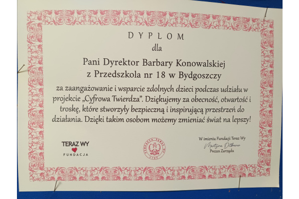 Czytaj więcej!DYPLOM I PODZIĘKOWANIA ZA UDZIAŁ W PROJEKCIE " CYFROWA TWIERDZA "