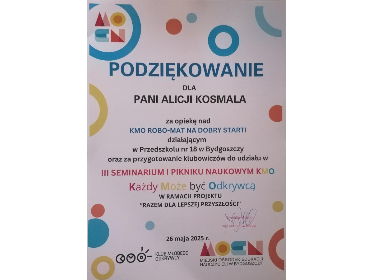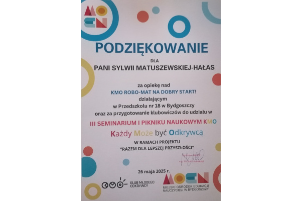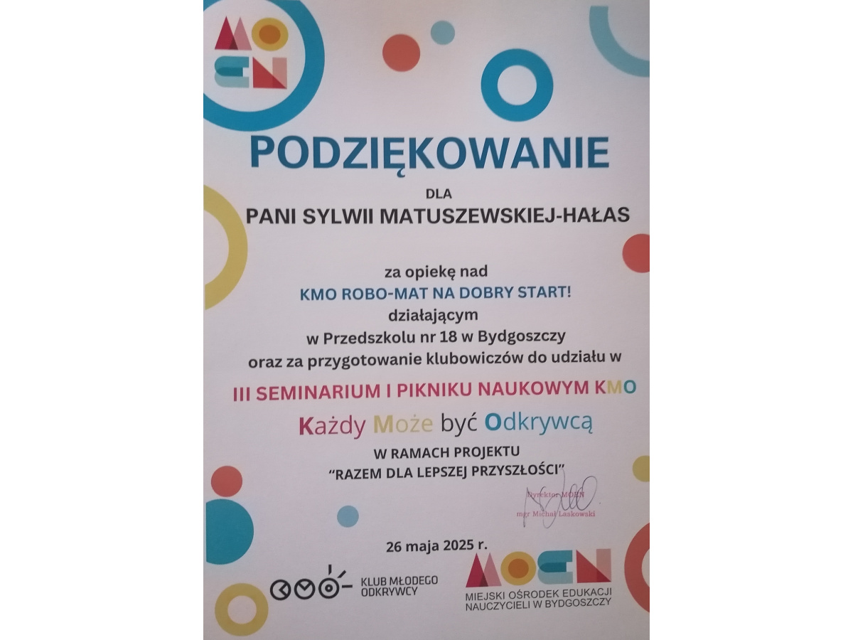 Opiekun KMO w Przedszkolu nr 18: mgr Sylwia Matuszewska-Hałas