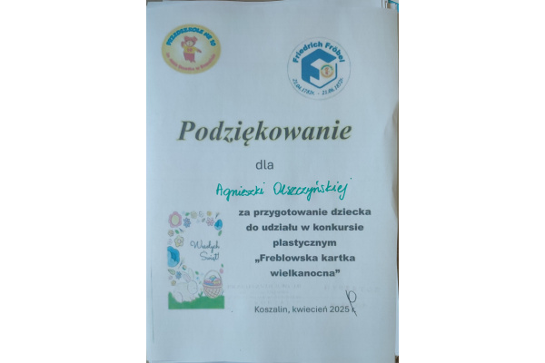 GALERIA - PODZIĘKOWANIE ZA PRZYGOTOWANIE DZIECI DO KONKURSU PLASTYCZNEGO