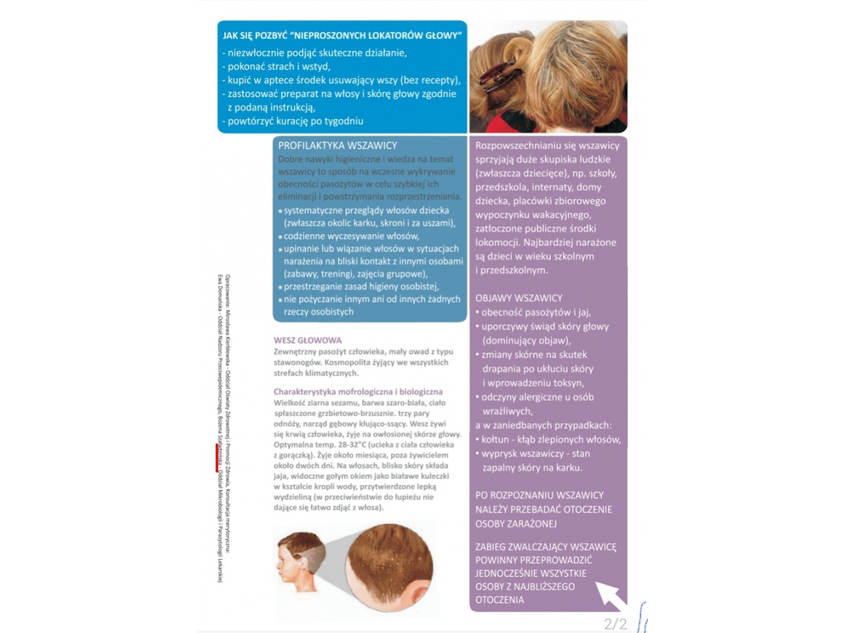 Każdego roku w Polsce obserwuje się zachorowania na różnego rodzaju parazytozy, a więc choroby wywołane pasożytami. Pasożyty są poważnym zagrożeniem dla zdrowia człowieka, dlatego zapobieganie tego typu zarażeniom jest bardzo ważne. Najbardziej na ten problem narażone są dzieci, zwłaszcza małe, u których nie zostały jeszcze ukształtowane prawidłowe nawyki higieniczne. Specyfika choroby sprawia, że jedno chore dziecko, staje się potencjalnym źródłem zarażenia dla wszystkich osób z jego otoczenia. Z uwagi na ten fakt choroby pasożytnicze łatwo szerzą się w skupiskach takich jak przedszkola, szkoły, internaty, domy dziecka itp. Nasze przedszkole bierze udział w organizowanym przez SANEPiD przedsięwzięciu edukacyjnym pn. „Profilaktyka chorób pasożytniczych – owsica, wszawica, świerzb”. Program został opracowany w celu ograniczenia szerzenia się chorób pasożytniczych wśród dzieci w wieku przedszkolnym i wczesnoszkolnym.