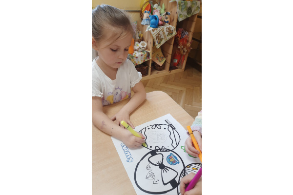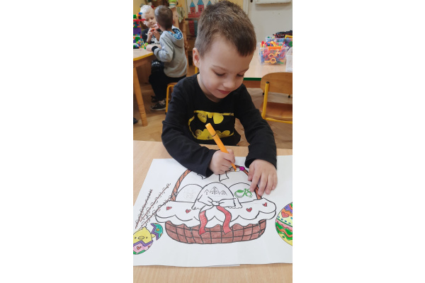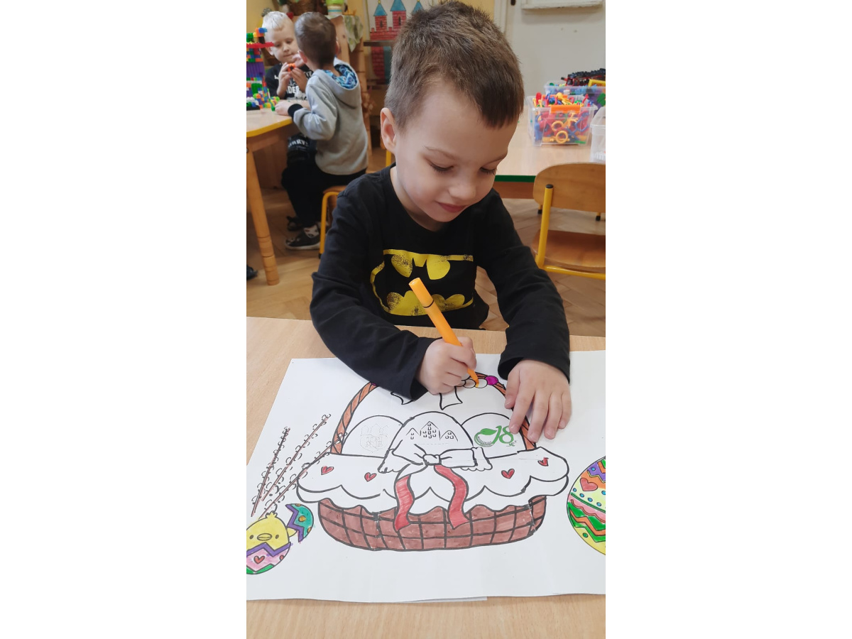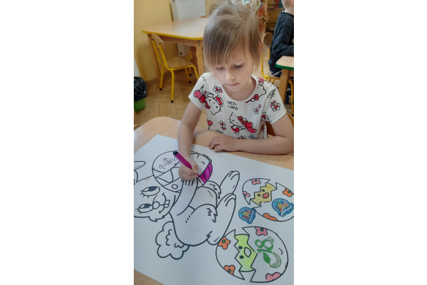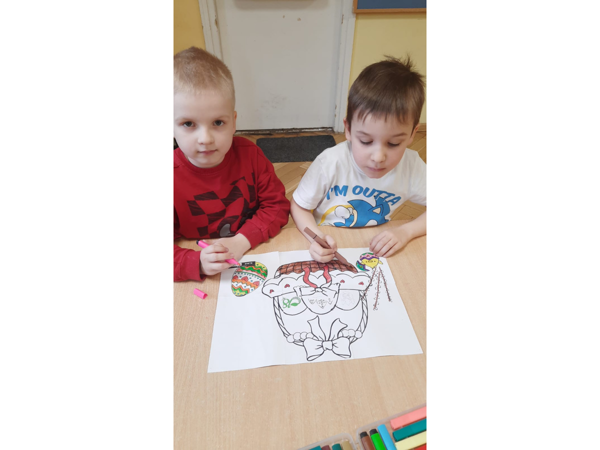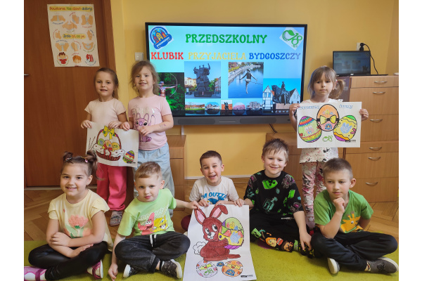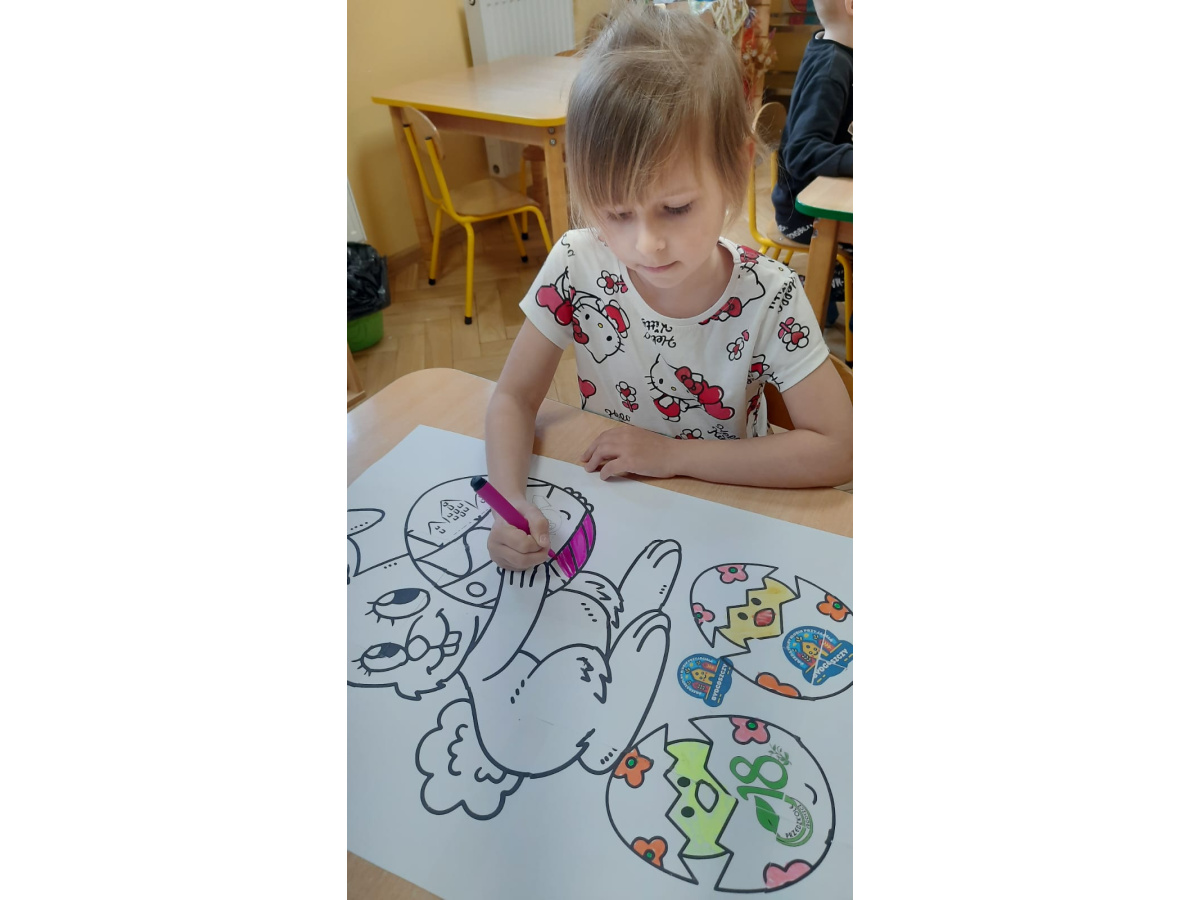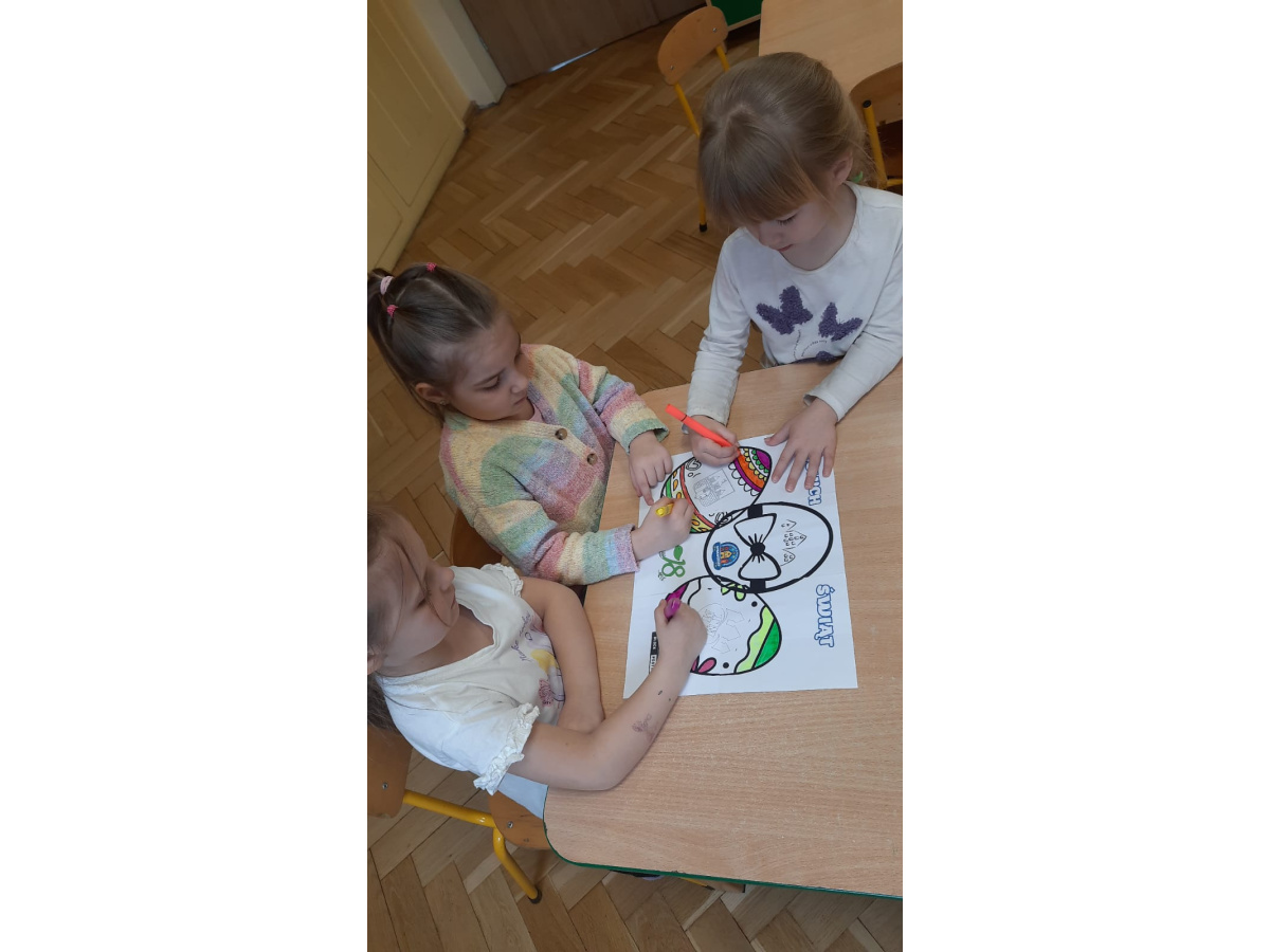 W ramach Konkursu Plastycznego „Bydgoska wielkanocna pisanka” dzieci nie tylko wzięły udział w samym konkursie, ale również z radością i zaangażowaniem wspólnie pokolorowały przygotowane kolorowanki tematyczne. Ich prace były pełne barw i kreatywności, ukazując dziecięcą wyobraźnię i wrażliwość artystyczną. W trakcie wspólnego kolorowania dzieci miały okazję nie tylko rozwijać swoje umiejętności plastyczne, ale także budować więzi, współpracując i ciesząc się atmosferą twórczej zabawy.