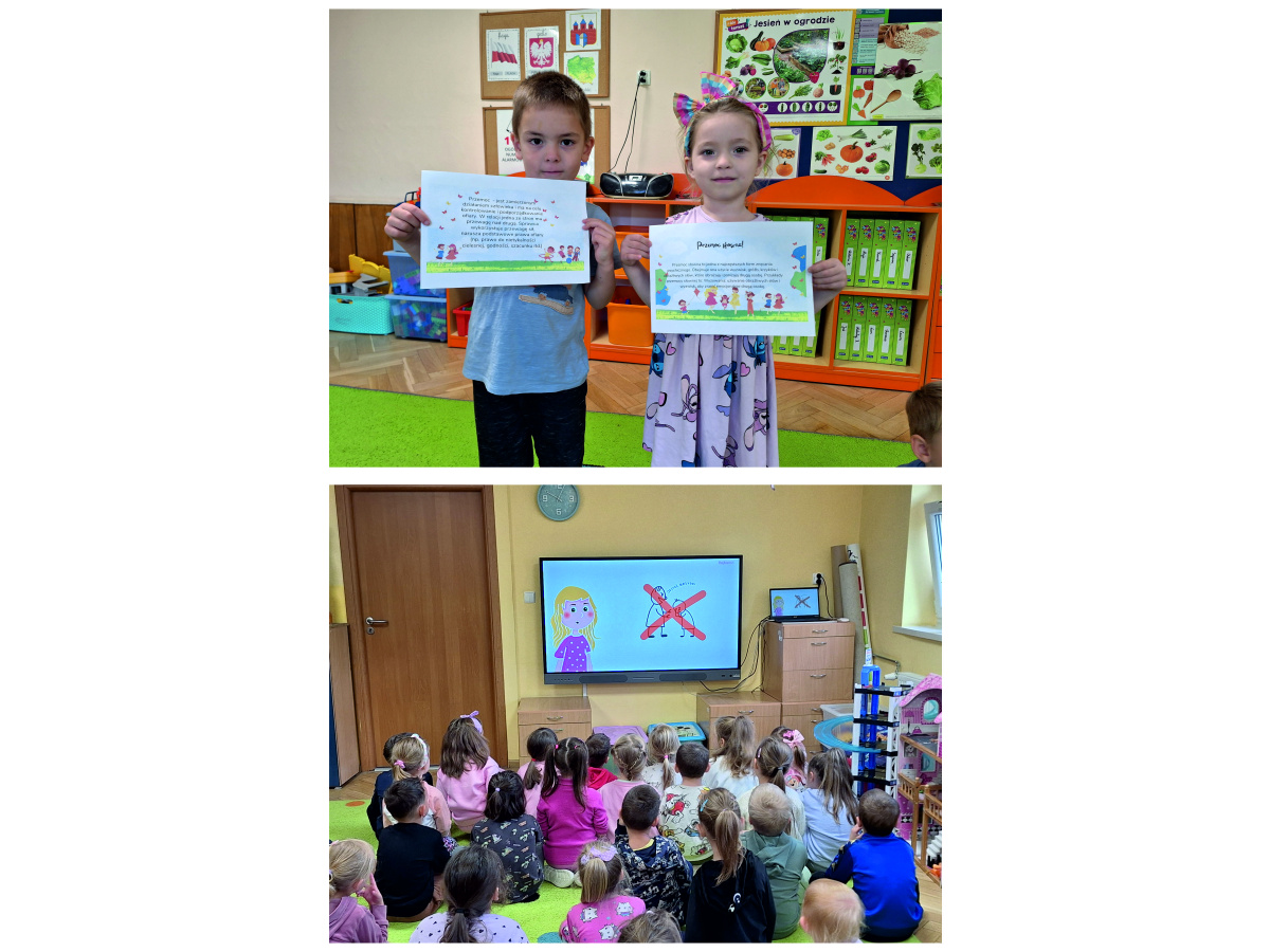 W dniach 29.09. - 03.10.2025r. nasza społeczność przedszkolna wzięła udział w ogólnopolskiej inicjatywie Ministra Edukacji Narodowej " Tydzień budowania relacji ". Działania podjęte w tym czasie miały na celu wzmacnianie pozytywnych relacji między rówieśnikami , rozwijanie empatii wobec drugiej osoby oraz nauka rozwiązywania konfliktów w sposób pokojowy . W ramach tygodnia pod hasłem 'Tydzień Przeciwdziałania Przemocy Rówieśniczej" dzieci uczestniczyły w różnorodnych zajęciach i warsztatach, których celem było uwrażliwienie na potrzeby innych.