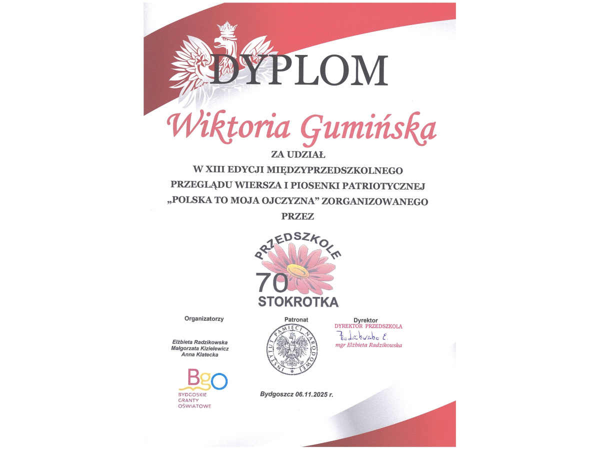 UDZIAŁ WIKTORII I SZYMONA W XIII EDYCJI MIĘDZYPRZEDSZKOLNEGO PRZEGLĄDU WIERSZA I PIOSENKI PATRIOTYCZNEJ " POLSKA TO MOJA OJCZYZNA " .