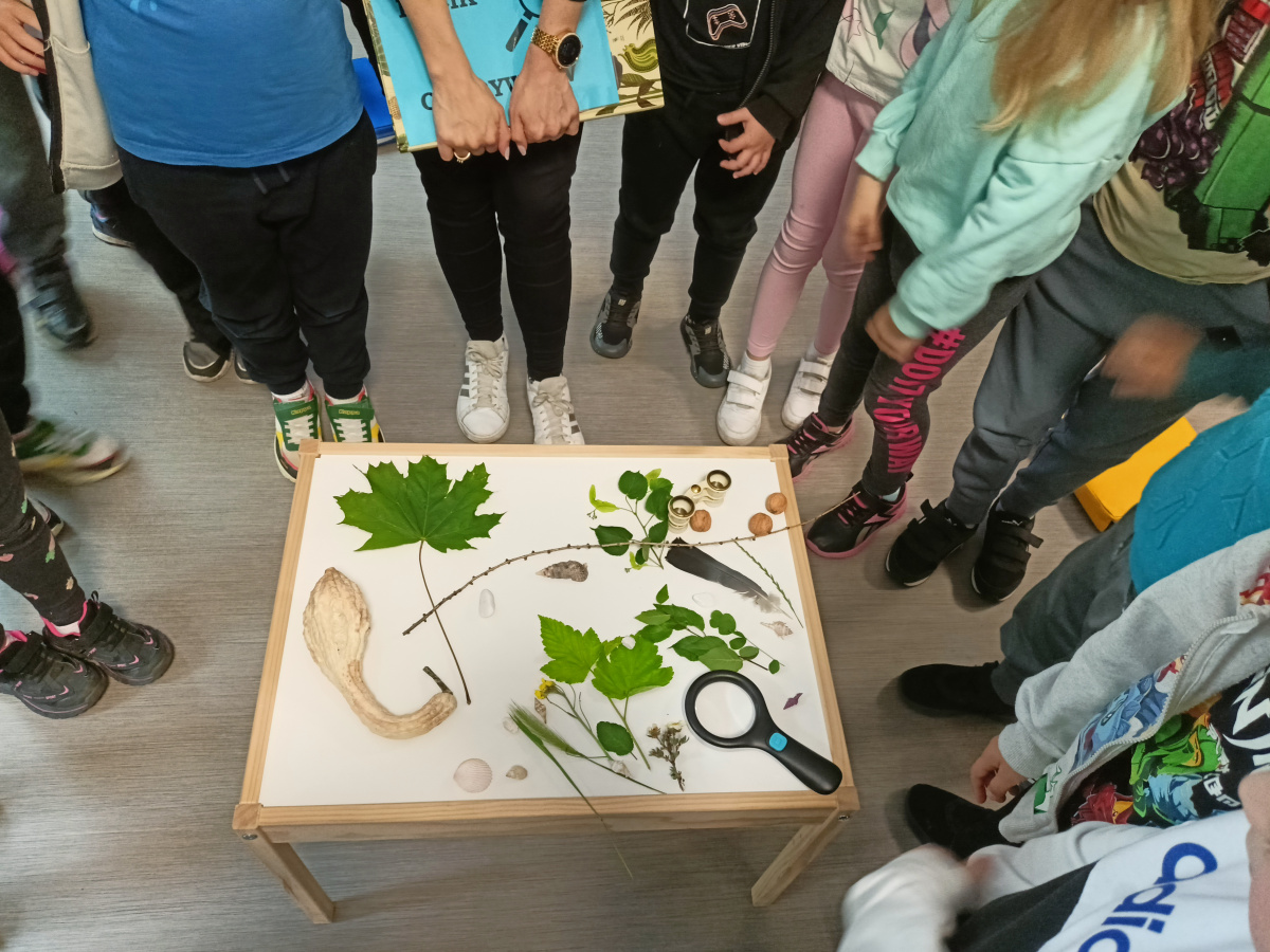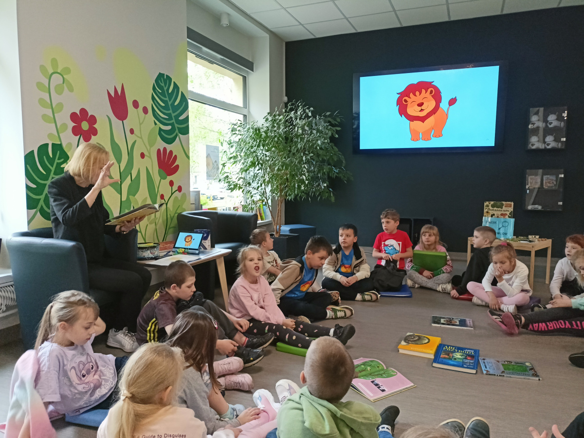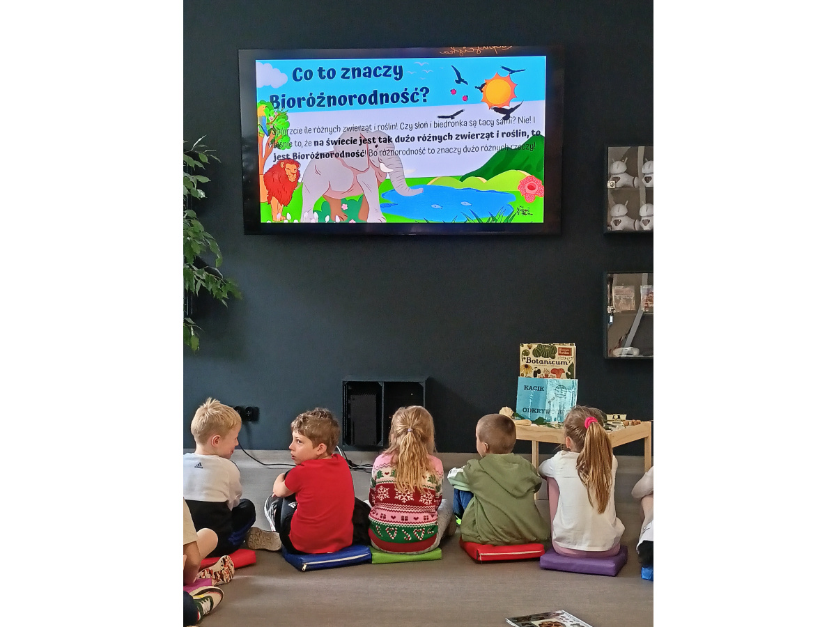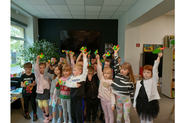 W piątek 30.05.2025 grupa 5 udała się do biblioteki, aby wziąć udział w zajęciach dotyczących bioróżnorodności w ramach realizacji grantu oświatowego pt : "Rośliny i zwierzęta wokół mnie - dbam o bioróżnorodność w moim przedszkolu i w moim mieście" . Dzieci dowiedziały się, co oznacza słowo "bioróżnorodność" oraz poznały zależności między światem zwierząt i roślin. Wysłuchały ciekawego opowiadania, wzięły udział w zabawie ruchowej, a na koniec wykonały pracę plastyczną z kolorowego papieru - gąsienicę.